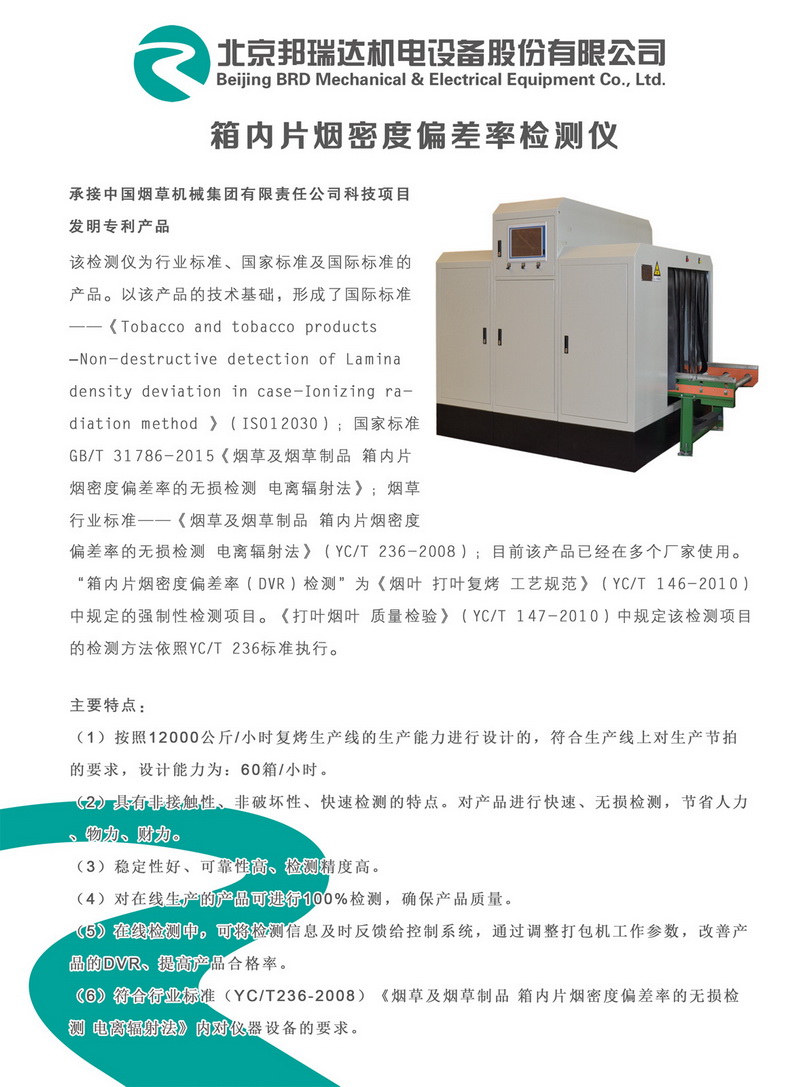 | 箱內片煙密度偏差率檢測儀介紹資料 | |
